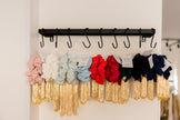 Deze stoffen mouwophouders zijn de perfecte aanvulling op uw traditionele jurk. Ze combineren functionaliteit met stijl, waardoor ze niet alleen uw mouwen op hun plaats houden, maar ook een vleugje glamour en luxe toevoegen aan uw outfit. De kleur contrasteert prachtig met de gouden kwastjes, wat zorgt voor een chique uitstraling.